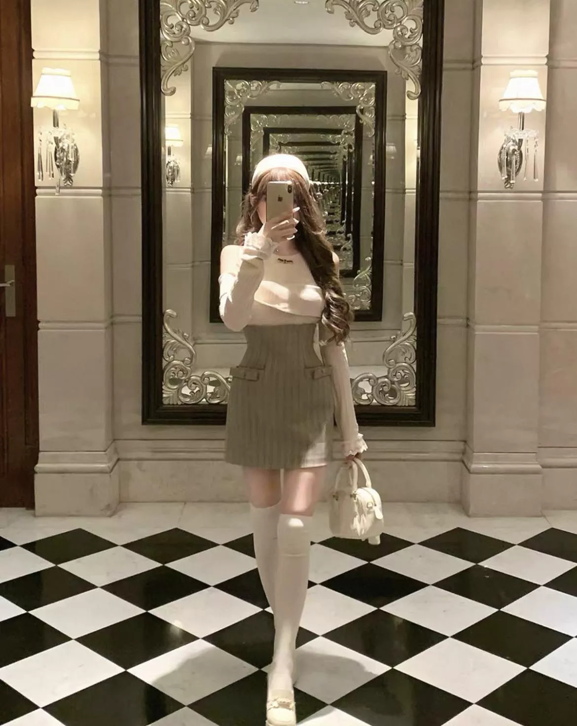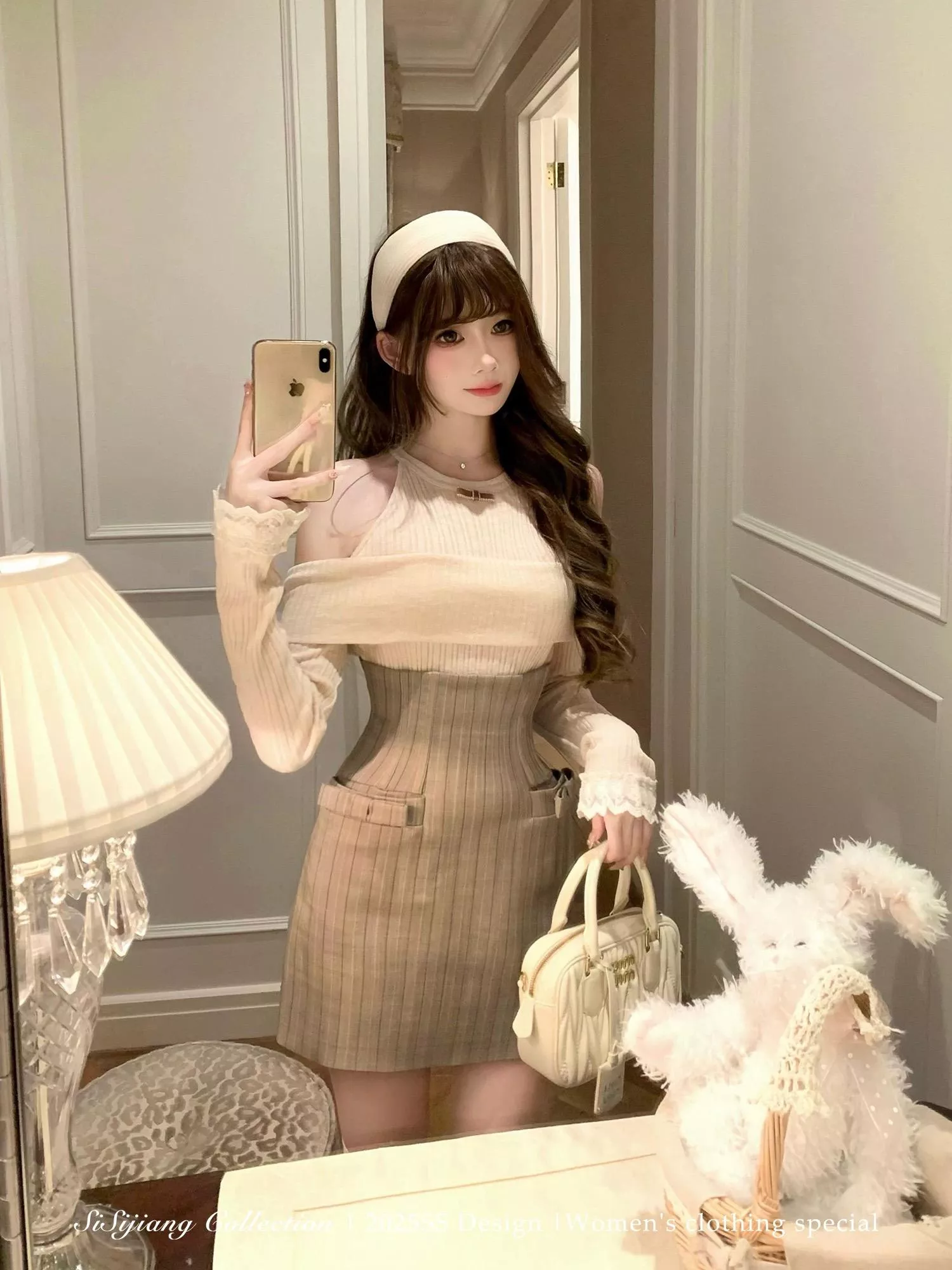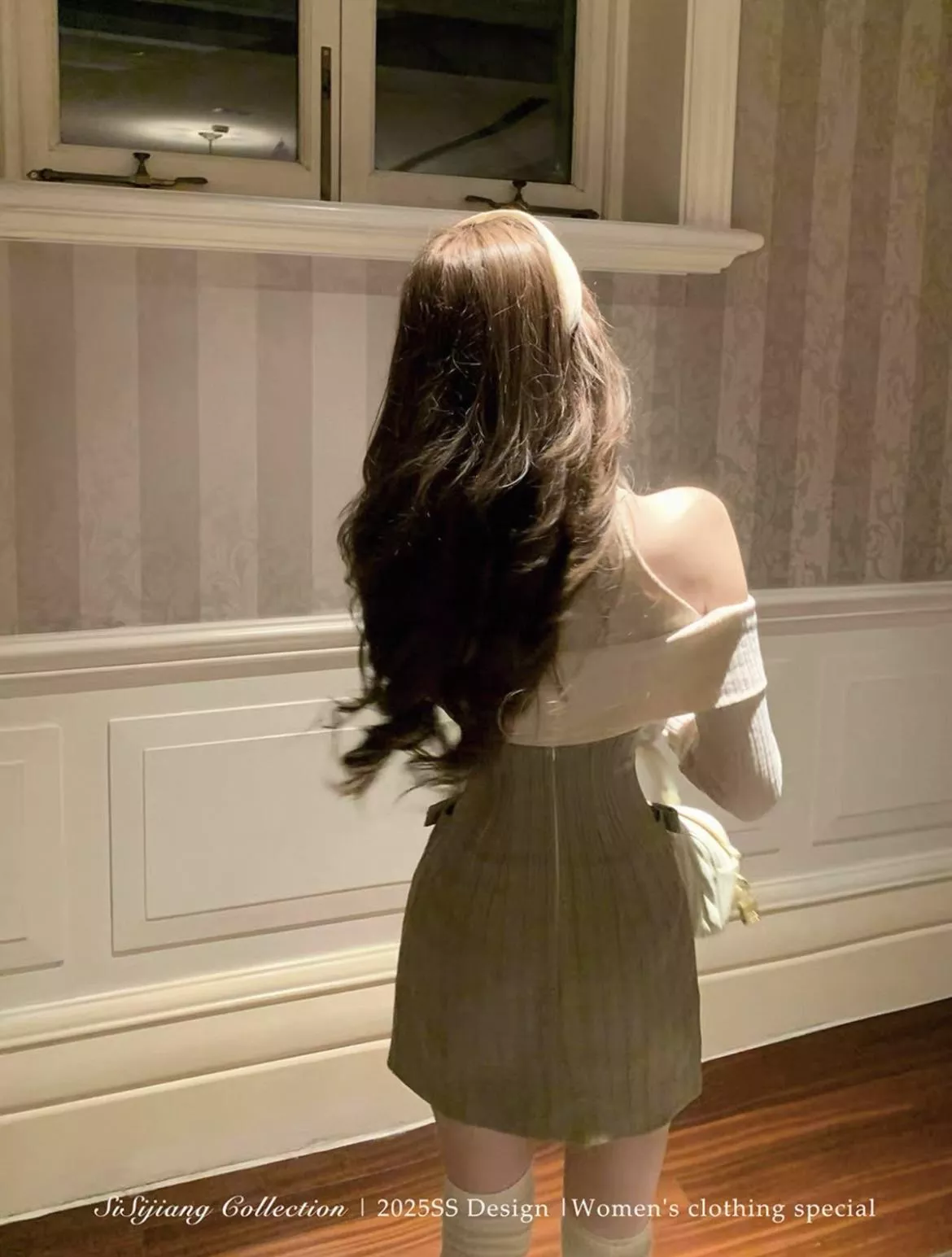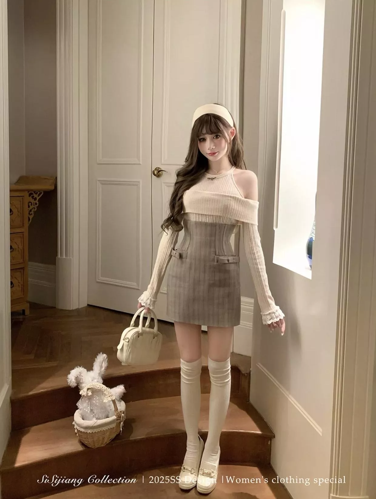 露肩上衣+掐腰短裙